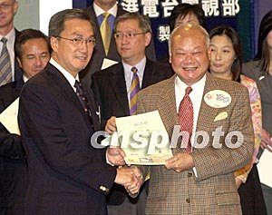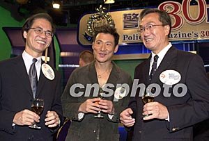10月16日,香港電臺(tái)與警務(wù)處聯(lián)合制作的電視節(jié)目《警訊》舉行三十周年紀(jì)念典禮,警務(wù)處處長曾蔭培及廣播處長朱培慶與歌星張學(xué)友于活動(dòng)上言談甚歡。作者:鄧慶樂