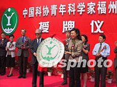 中國科協(xié)青年科學(xué)家福州活動基地二十三日舉行隆重的授牌儀式。中共中央委員、中國科協(xié)副主席張玉臺(前左一)宣布“福州基地”成立,并與中共市委副書記雷春美(右一)共同向“福州基地”授牌!案V莼亍笔侵袊茀f(xié)在全國設(shè)立的第二個青年科學(xué)家活動基地,旨在為海峽兩岸青年科學(xué)家搭起科技交流、合作的新平臺。中新社記者:劉可耕