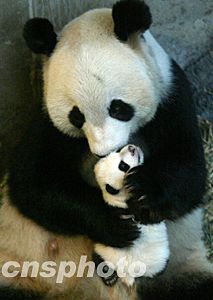 10月24日,初次做母親的北京動物園八歲大熊貓“妞妞”精心護(hù)理出生六十二天的幼崽“甜甜”。體重從出生時(shí)150克到如今3,000克又有些淘氣的“甜甜”,讓為其梳理毛發(fā)的“妞妞”有些手忙腳亂。中新社記者:任晨鳴