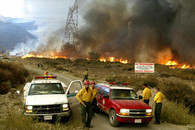 已經(jīng)被選下臺的加州州長戴維斯現(xiàn)在擔任滅火總指揮。他宣布加州處于緊急狀態(tài),并向布什總統(tǒng)求助。