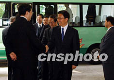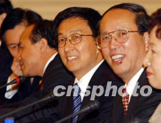 十月二十七日,滬港經(jīng)貿(mào)合作會(huì)議在香港禮賓府舉行,圖為上海市市長(zhǎng)韓正(中)、上海市副市長(zhǎng)周禹鵬(右)等上海高官出席該會(huì)議。中新社記者:潘索菲