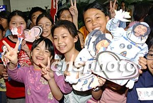 據(jù)香港媒體消息,機(jī)場(chǎng)有逾800名學(xué)生、教師及市民迎接楊利偉。