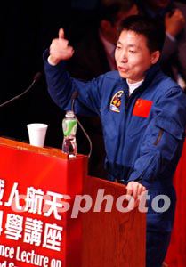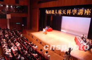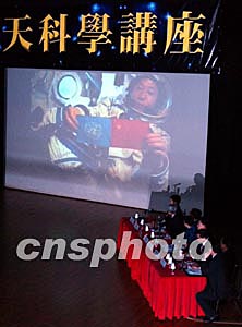 香港教育統(tǒng)籌局于11月3日在大會堂舉辦 “中國載人航天科普講座”,期間首次播放載人航天過程的紀錄片。中新社記者:洪少葵