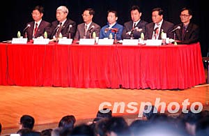 中國載人航天工程總設計師王永志【右三】等代表團成員,11月3日出席香港舉辦的“中國載人航天科普講座”,向教育界人士和學生介紹中國航天科技工程。中新社記者:洪少葵