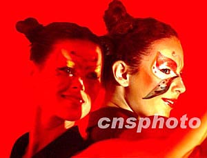 參加中國杭州新絲路世界模特大賽的外國小姐,在金秋時節(jié)決賽前登臺展現(xiàn)人面彩繪。中新社記者:賈國榮