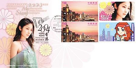 Kelly親自創(chuàng)作了兩款郵票,第一款選自其唱片專輯《愛》中的造型照;另一款則是配合這次大會(huì)主題旅游,特別邀請漫畫家義務(wù)繪畫卡通版Kelly游覽香港維港的構(gòu)圖。