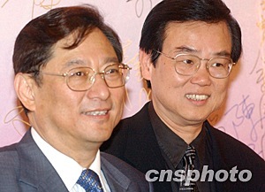 香港著名導(dǎo)演吳思遠(yuǎn)、明星黃百鳴11月8日晚出席在香港會(huì)展中心舉行的“2003中華小姐環(huán)球大賽”總決賽頒獎(jiǎng)儀式。中新社記者:錢興強(qiáng)