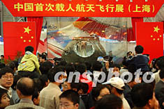 十一月九日,“神舟”五號(hào)返回艙亮相第五屆上海國(guó)際工業(yè)博覽會(huì),中國(guó)首次載人航天飛行展也同時(shí)在滬展出,吸引了眾多市民一早就來(lái)到展會(huì)現(xiàn)場(chǎng)一睹“神五”的風(fēng)采。作者:湯彥俊