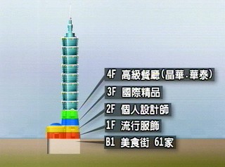 目前世界排名十大高樓,臺(tái)灣以臺(tái)北101購(gòu)物中心,樓高508米,擁有101層樓登上榜首。