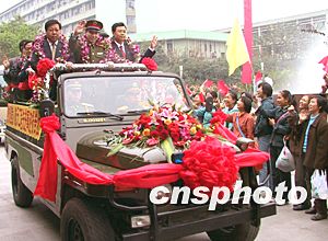 圖:"航天英雄"楊利偉一行在重慶受熱烈歡迎