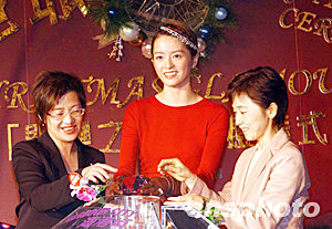 圣誕節(jié)即將到來之際,香港最大型的室內(nèi)購(gòu)物商場(chǎng)-海港城于11月21日率先亮起圣誕燈飾,今年海港城的機(jī)動(dòng)燈飾以《閃爍之城》為主題,圖為明星梁詠琪(中)與海港城置業(yè)有限公司執(zhí)行董事李玉芳(左)等啟動(dòng)機(jī)動(dòng)圣誕燈飾。作者:洪少葵