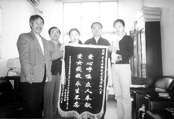 昨天上午,陽光明媚,華夏時報社《華夏愛心團周刊》編輯室內(nèi)更是暖意融融。由華夏愛心團用愛心呼喚社會奉獻救助的怪病少女宋麗娜面帶微笑,心揣謝意,和父親宋洪立一道送來了一面錦旗,表達父女倆內(nèi)心的真摯情感:愛心呼喚眾人奉獻,愛女獲救永生不忘。