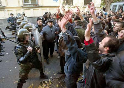 圖:格魯吉亞反對(duì)派沖破警察防線沖進(jìn)議會(huì)大樓