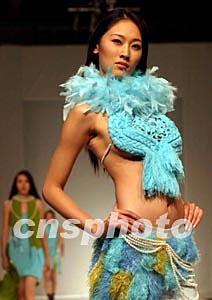 浙江工程學(xué)院國(guó)際時(shí)裝技術(shù)學(xué)院學(xué)生錢(qián)麗霞的作品《漣漪》二十三日在北京獲得第二屆中國(guó)針編織時(shí)裝設(shè)計(jì)大賽頭獎(jiǎng)。中新社記者:史利