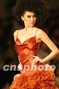 林姿含·珈里·2004春夏時(shí)裝發(fā)布會(huì)十一月二十二日晚在北京中國(guó)大飯店舉行。迷惑·靈動(dòng)、蠱惑·記憶、媚惑·釋放三大系列主題演繹了當(dāng)代女性在追求品位中放縱心情的時(shí)尚心態(tài)。中新社記者:盛佳鵬