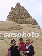 由中國、俄羅斯、日本、美國等七個國家的十余名沙雕藝術(shù)家創(chuàng)作的風(fēng)格各異的沙雕作品近日在?谖骱0墩秸钩觥F渲泻教煊⑿蹢罾麄サ纳车裥蜗笪姸嗍忻窦娂姾嫌。中新社記者:王辛莉
