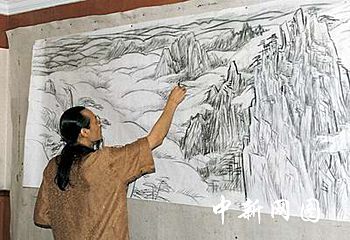 董希源山水與花鳥皆有較深的造詣,且善作大畫而不驕不厲,一幅《黃山畫卷》竟長(zhǎng)達(dá)27米、高2.3米,令參觀者嘆為觀止。在建國(guó)五十四周年前夕,他曾分別為天安門城樓和人民大會(huì)堂完成《山高云祥》、《鶴鳴天地寬》兩幅宏篇巨作。
