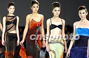 圖:外國模特北京國際時裝周上展示天籟時裝