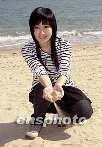 歌星關(guān)心妍11月26日在香港赤柱正灘為無(wú)線電視拍攝音樂(lè)劇《愛(ài)在富豪海灣的日子》外景,關(guān)心妍閑來(lái)在沙灘弄沙,浪漫一番。作者:鄧慶樂(lè)