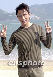 歌星黃凱芹11月26日在香港赤柱正灘為無(wú)線電視拍攝音樂(lè)劇《愛(ài)在富豪海灣的日子》外景,黃凱芹與關(guān)心妍拍完一幕親熱戲后,雙手?jǐn)[出勝利手勢(shì)。作者:鄧慶樂(lè)