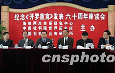 中新社北京十二月一日電(記者路梅)國(guó)務(wù)院臺(tái)灣事務(wù)辦公室副主任、海研中心顧問(wèn)王在希一日在此間舉行的紀(jì)念《開(kāi)羅宣言》發(fā)表六十周年座談會(huì)上再次強(qiáng)調(diào),臺(tái)灣是中國(guó)神圣領(lǐng)土不可分割的一部分,中國(guó)政府決不容許某些人以任何方式把臺(tái)灣分割出去。