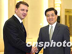 中新社北京十二月四日電(記者張朔)中國國家主席胡錦濤今天下午在人民大會堂會見斯洛文尼亞總理安東·羅普時表示,中方愿推動中斯兩國關(guān)系全面深入地向前發(fā)展。