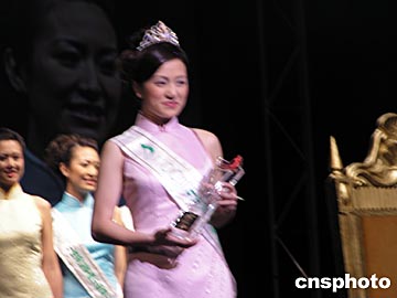 2003年度悉尼華裔小姐競選6日晚揭曉:20歲的江蘇姑娘,悉尼科技大學(xué)學(xué)生王云仙摘得華裔小姐和最上鏡小姐兩項(xiàng)桂冠;22歲的香港姑娘,悉尼科技大學(xué)學(xué)生林嘉琪和20歲的大連姑娘,悉尼大學(xué)學(xué)生欒諾分別獲得華裔小姐亞軍和季軍。在澳洲出生的22歲的陳慧玲被選為友誼小姐。中新社記者 劉雨生 攝影報道