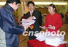 中國人壽保險(xiǎn)股份有限公司8日在香港公開招股,預(yù)期最高集資額逾231億港元,是今年全球最大宗新股集資活動(dòng)。據(jù)悉,包括香港長實(shí)、和黃等集團(tuán)已認(rèn)購股份。圖為銀行向市民派發(fā)招股書。作者:譚達(dá)明