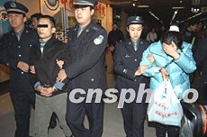 十二月八日清晨,北京東城警方將持槍入室搶劫達(dá)二十一萬(wàn)元人民幣的犯罪嫌疑人蔡某(男)及同案犯押解回京。此案正在進(jìn)一步審理中。中新社記者:任海霞