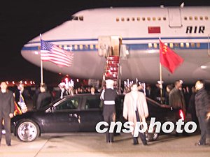 中國外交部長李肇星、國家發(fā)改委主任馬凱等主要隨行人員也同機抵達。完