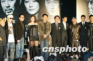 港產(chǎn)電影《無間道3終極無間》臺前幕后12月9日晚于香港時代廣場舉行首影禮。劉德華在首映禮上與梁朝偉介紹劇情,陳慧琳則滿足在場攝記。作者:鄧慶樂