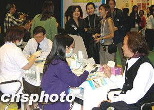 “媽咪寶寶暨家庭健康博覽2003”十二月十二日在香港會(huì)展中心開幕,主辦機(jī)構(gòu)提供的十多項(xiàng)免費(fèi)健康測(cè)試及現(xiàn)場(chǎng)健康咨詢服務(wù)受到與會(huì)者青睞,并成為博覽會(huì)特色之一。作者:潘索菲