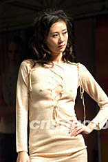 第二屆中國(guó)(大朗)國(guó)際毛織產(chǎn)品交易會(huì)十三日在廣東東莞大朗鎮(zhèn)新落成的中國(guó)大朗毛織貿(mào)易中心開幕,首場(chǎng)品牌發(fā)布會(huì)上,模特兒穿著薏莎品牌向人們展示該品牌的最新服裝。作者:羅仰明