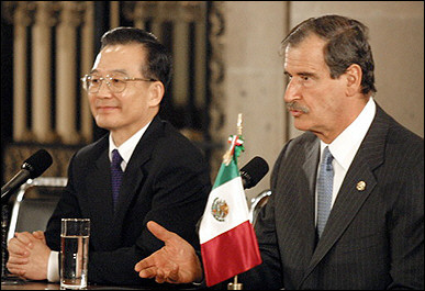 溫家寶對福克斯說:中墨建交31年來,兩國關(guān)系經(jīng)受住了時間和國際風(fēng)云的考驗,正處于歷史上最好時期,我們對此感到滿意。