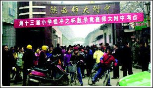當記者下午來到考點之一的陜師大附中,只見大門口擠滿應(yīng)試的學(xué)生和家長,長時間不愿離去。一位家長氣憤地問:“難道孩子手中的準考證、校門口懸掛的橫幅,還有大紅印章都是假的?政府一會兒讓考,一會兒不讓考,這是咋回事?”許多學(xué)生和家長擁入校辦公室討說法,一位張姓主任說,學(xué)校只提供教室,考與不考都是尤廉那兒通知的。