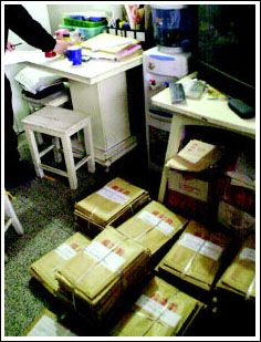 知情學(xué)生家長反映,周日他們將組織一次大規(guī)模數(shù)學(xué)考試,西安市教育局局長李尚儉聞訊,指派局稽查隊前往查處。昨日稽查隊一行4人來到尤廉家中,看到地上堆滿密封好的整袋整袋試卷,各考點的人陸續(xù)前來領(lǐng)取考卷。面對稽查人員的詢問,尤廉和楊益新說,他們這次考試未向任何部門申報,幾年來一直是這樣做的。這次每個考生收取報名費8元,若要他們編寫的“祖沖之杯”數(shù)學(xué)邀請賽資料,再加收2元。這次報名考生共有9000多人。當聞訊趕來的長延堡派出所副所長朱小青追問印章來由時,楊益新承認印章是私刻的。民警后來在房間電腦中發(fā)現(xiàn)這次考生實際人數(shù)竟達14919人。考點分別設(shè)在陜師大附中、高新一小、鐵一中等十幾所學(xué)校。記者在現(xiàn)場還發(fā)現(xiàn),他們印制的“2004年全國小學(xué)數(shù)學(xué)奧林匹克參賽辦法”已出爐,其中對收費辦法、售賣材料及學(xué)生聯(lián)系辦法都有詳細要求;槿藛T隨后查扣了剩余試卷,并責(zé)令他們盡快通知各考點?。但事情遠沒有那么簡單。