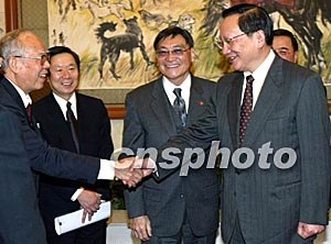 唐家璇在釣魚臺國賓館會見香港前高級公務(wù)員協(xié)會代表團(tuán)。他在會見前回答香港記者有關(guān)香港政制發(fā)展問題時(shí)作以上表示。
