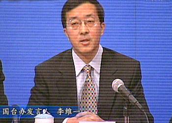 國(guó)務(wù)院臺(tái)灣事務(wù)辦公室今天上午在釣魚臺(tái)大酒店舉行新聞發(fā)布會(huì),發(fā)表了題為《以民為本,為民謀利,積極務(wù)實(shí)推進(jìn)兩岸“三通”》的政策說明書。