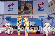 香港九廣西鐵12月20日正式通車,在錦上路站舉行啟用儀式,醒獅起舞助興為九廣西鐵通車?yán)_帷幕。中新社記者:洪少葵