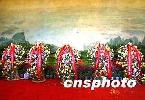 十二月二十六日是毛澤東誕辰110周年,北京毛主席紀(jì)念堂內(nèi)擺放著中共中央、國務(wù)院、全國人大常委會(huì)、中央軍委、全國政協(xié)敬獻(xiàn)的花籃。中新社記者:任晨鳴
