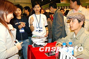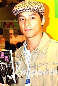 香港藝員吳彥祖十二月二十六日在香港會展中心舉行的“書節(jié)2003”上,為電影原著小說《妖夜回廊》簽名。中新社記者:錢興強(qiáng)