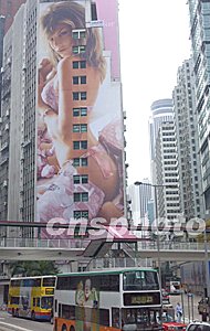在香港繁華街頭醒目的美女廣告與幾十層樓同高,顯示出國際大都市中商業(yè)廣告設(shè)計的品味與風(fēng)格。作者:錢興強(qiáng)