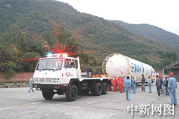 圖:“長征二號丙”改進型運載火箭轉(zhuǎn)運途中