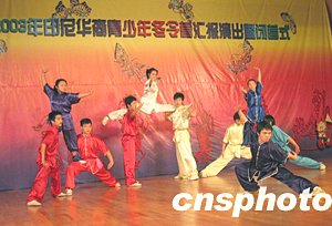 中新社長沙十二月二十九日電(殷敏鴻 鄧霞)二十九日上午,在湖南師大音樂學院演奏廳舉行了印尼華裔青少年中國民族舞蹈及中華武術冬令營匯報演出暨閉營式,伴隨著悠揚的音樂,小營員們身著中國傳統(tǒng)民族服裝,像模像樣地向臺下的中國觀眾表演了八天來在中國學到的民族舞蹈和中國功夫,博得陣陣熱烈掌聲。