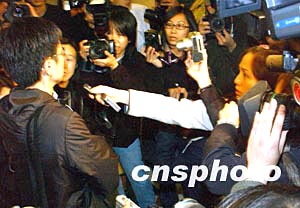 香港藝人梅艷芳因病于十二月三十日凌晨二時五十分在香港病逝,眾多記者來到養(yǎng)和醫(yī)院進行追蹤報導(dǎo)。中新社記者:錢興強