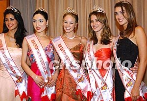 日前,在馬來西亞首都吉隆坡舉行的第八屆國(guó)際旅游小姐選美總決賽上共評(píng)出五項(xiàng)冠軍,大賽組委會(huì)主席向記者闡明,國(guó)際旅游小姐選美賽不同其它選美賽事,組委會(huì)現(xiàn)持有五項(xiàng)馬來西亞旅游部授權(quán)的大賽執(zhí)照,是次大賽由評(píng)判團(tuán)評(píng)出的有五項(xiàng)冠軍桂冠,南非的選手ANGELA BECK獲國(guó)際旅游小姐冠軍、希臘小姐獲國(guó)際旅游年度皇后冠軍、中國(guó)選手邢會(huì)原獲世界洲際小姐冠軍、阿根廷選手獲夢(mèng)幻小姐冠軍、捷克選手獲國(guó)際名城小姐冠軍。而且經(jīng)授權(quán),國(guó)際旅游年度皇后和國(guó)際名城小姐兩項(xiàng)賽事,已確定2004年分別在中國(guó)舉行。曾于2001年參加該賽的中國(guó)佳麗閻巍獲得夢(mèng)幻小姐冠軍,2002年中國(guó)佳麗殷子獲得國(guó)際旅游年度皇后桂冠。圖為大賽評(píng)選出的獲得不同項(xiàng)目的五名冠軍得主。中新社記者:錢興強(qiáng)