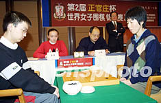 一月五日,第二屆正官莊杯女子圍棋世錦賽決賽在上海舉行。此間,賽會(huì)專(zhuān)設(shè)的新星挑戰(zhàn)賽也同時(shí)拉開(kāi)戰(zhàn)幕。由三位青少年男棋手挑戰(zhàn)當(dāng)今世界女子圍棋第一人——芮乃偉九段。圖為芮乃偉迎接李哲的挑戰(zhàn)。作者:湯彥俊