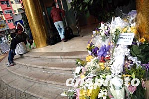 香港著名藝人梅艷芳喪禮將于1月11日在香港殯儀館設(shè)靈, 12日出殯,10日香港歌迷在殯儀館外擺放鮮花,向一代香港歌后梅艷芳深深悼念。
