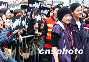香港樂(lè)壇藝人氣組合TWINS成員元月十日出席在香港添馬艦廣場(chǎng)舉行的環(huán)球嘉年華“開(kāi)心返來(lái)啦笑容大賞”活動(dòng),受到歌迷熱烈歡迎。中新社記者:錢(qián)興強(qiáng)
