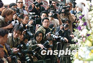 香港著名藝人梅艷芳喪禮于元月十一日設(shè)靈公祭,在香港殯儀館前大批記者報(bào)道有關(guān)梅艷芳喪禮新聞。中新社記者:錢(qián)興強(qiáng)